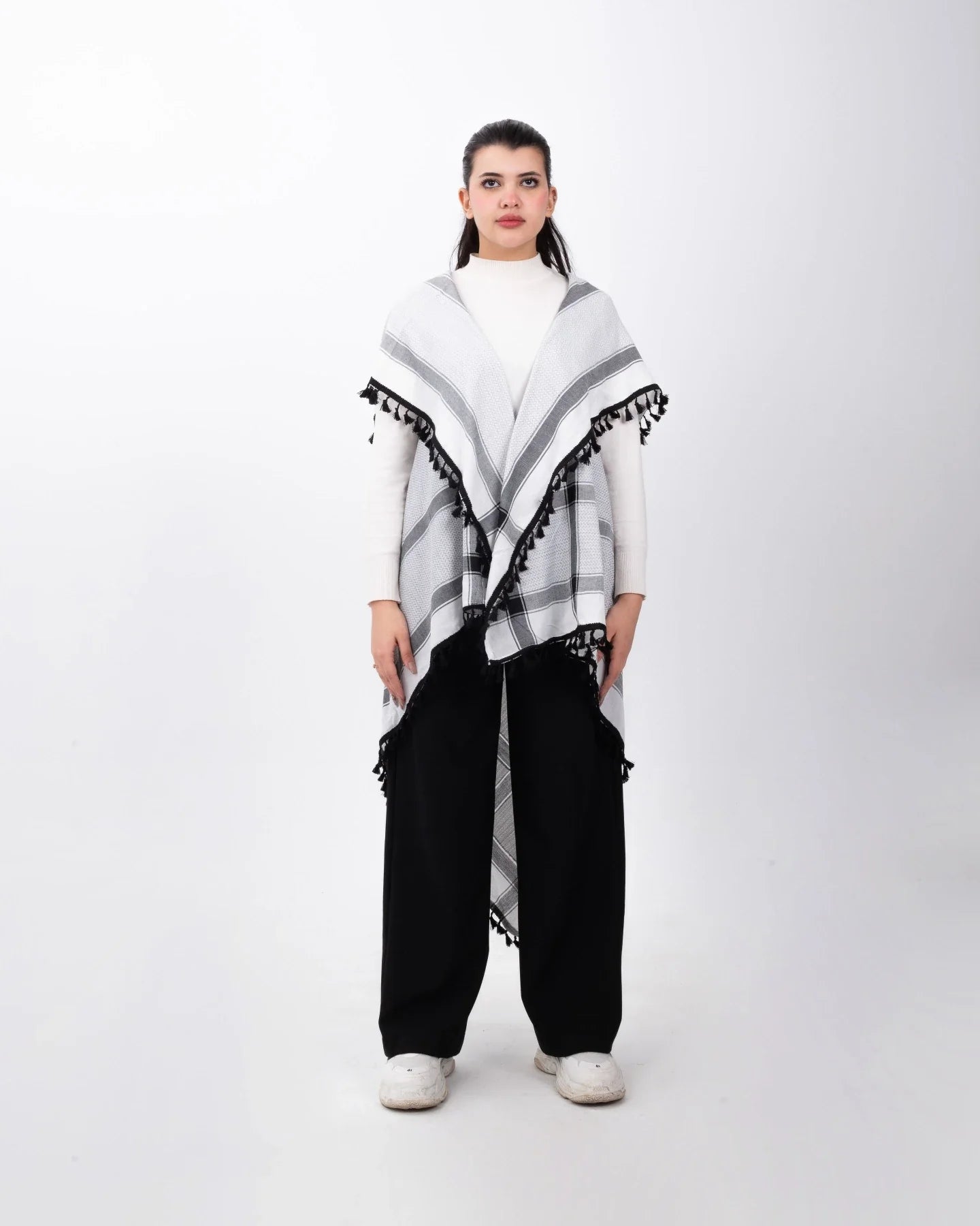 Presentamos el chaleco Kufiyah original cosido de Yafa Arts: una armoniosa fusión de herencia cultural y moda contemporánea. Este chaleco, elaborado meticulosamente con auténtica tela kufiyah palestina, ofrece una adición única y significativa a tu armario.