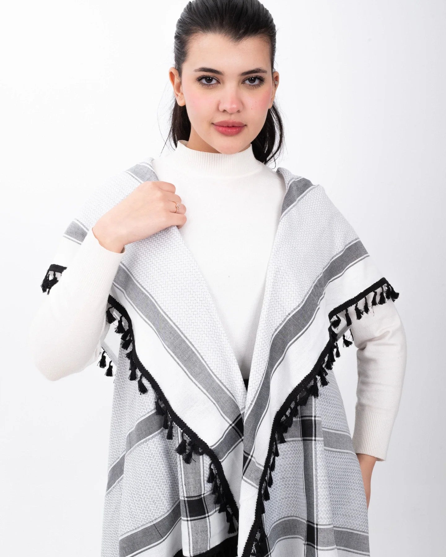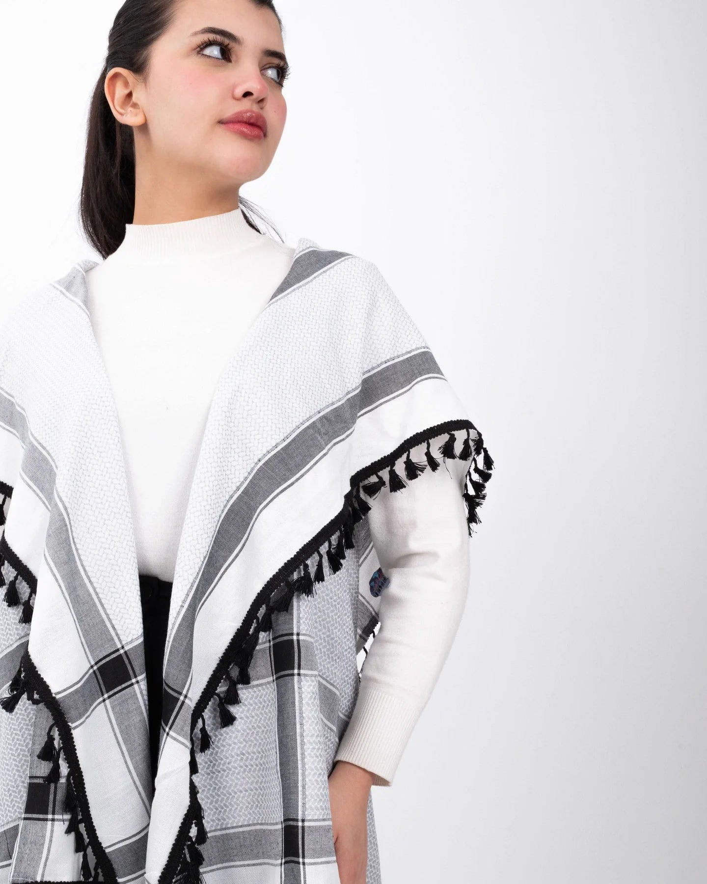 • Artesanía auténtica: presenta tela bordada tradicional con bordes con borlas hechos a mano, preservando el rico significado cultural de la Kufiyah.