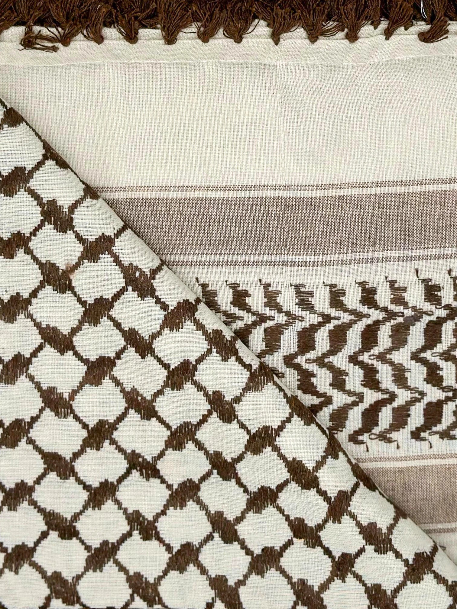 Kuffiyeh palestinien classique marron et blanc par YAFA ARTS