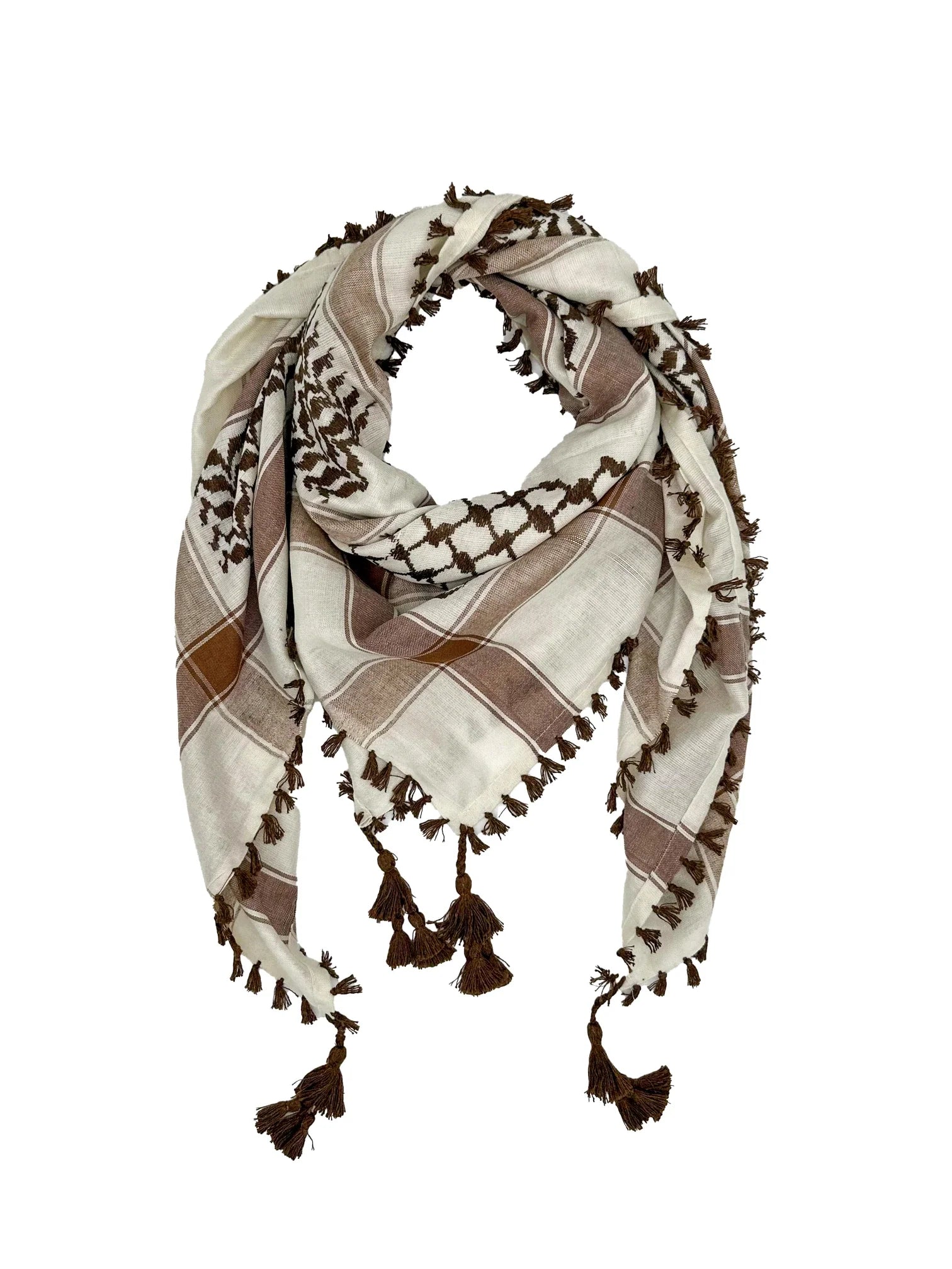 Élégant kuffiyeh palestinien marron et blanc par YAFA ARTS
