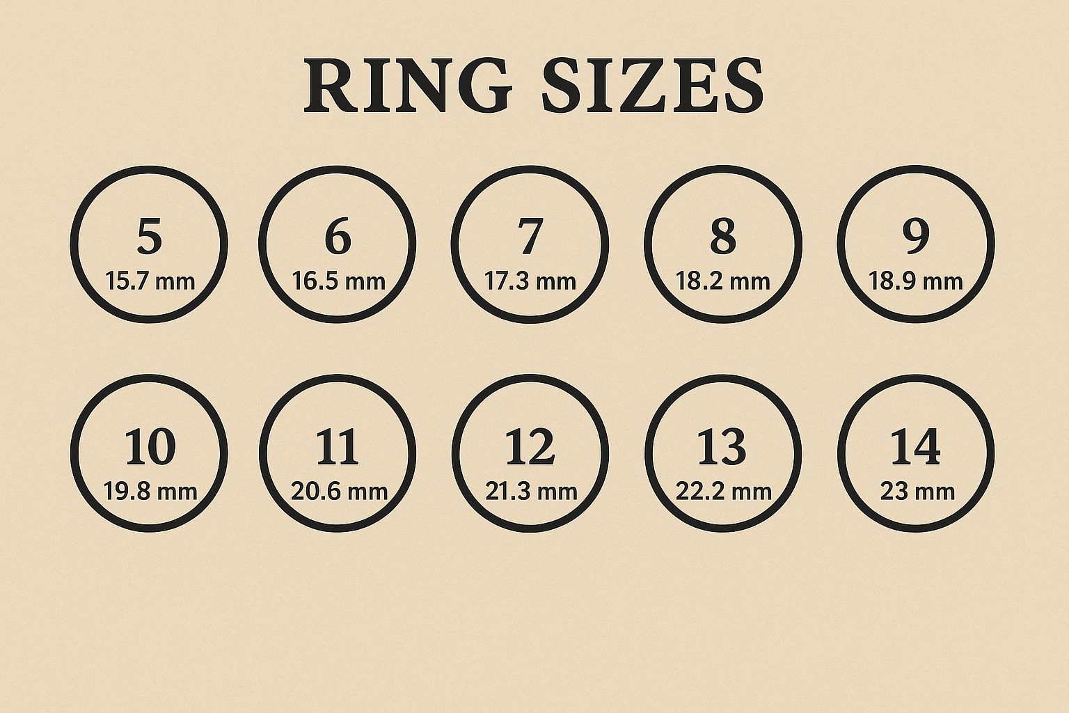 • Taille 19 : 19 mm de diamètre intérieur Veuillez mesurer votre doigt ou vous référer à notre tableau des tailles de bague avant de commander