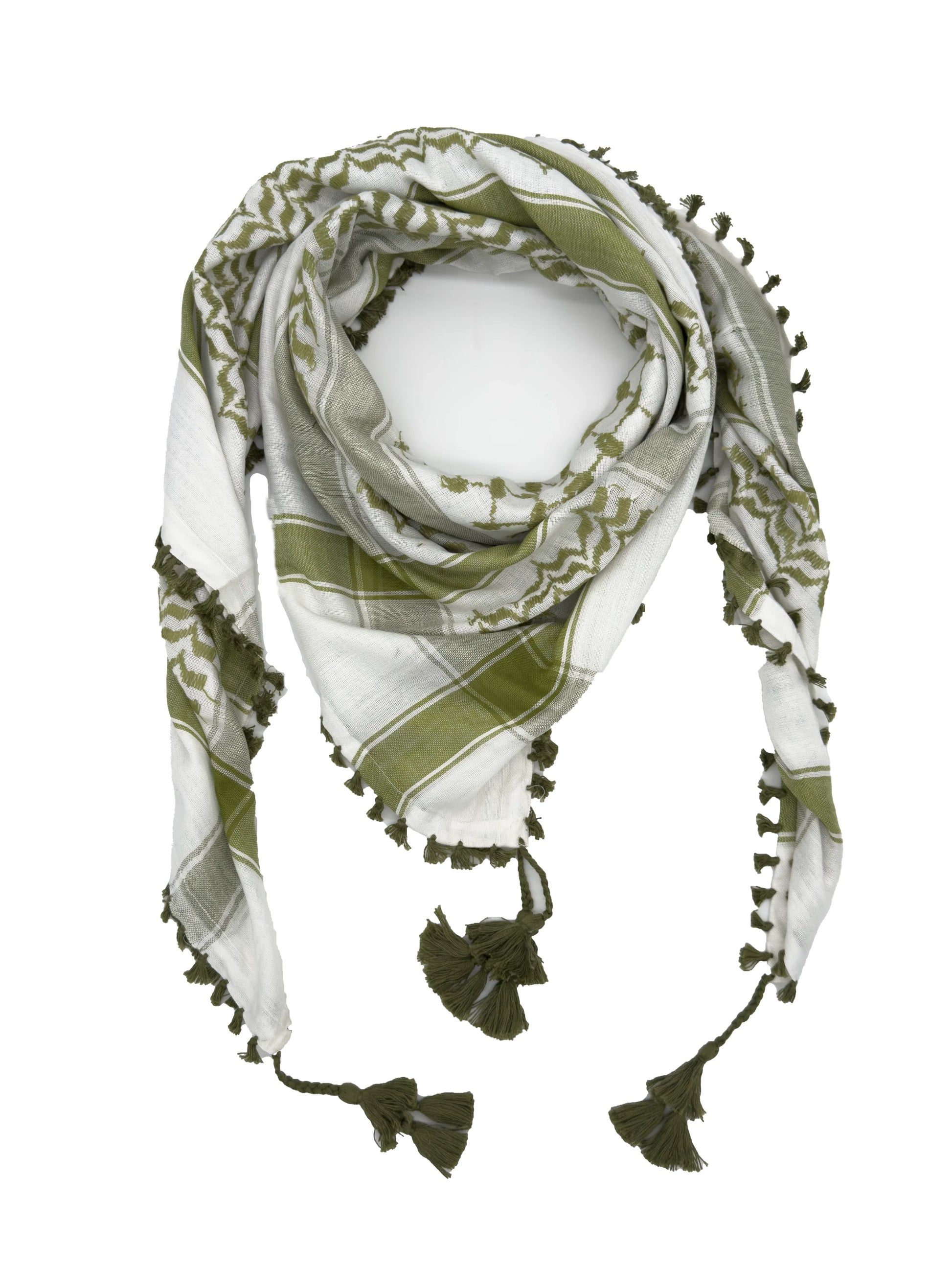 White & Olive Palestinian Kuffiyeh – A Timeless Symbol of Heritage